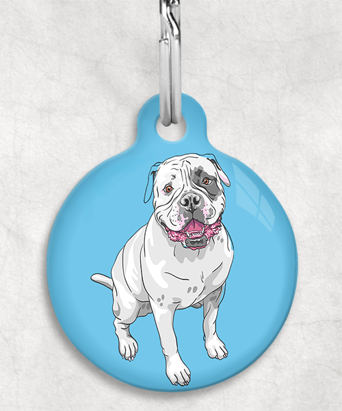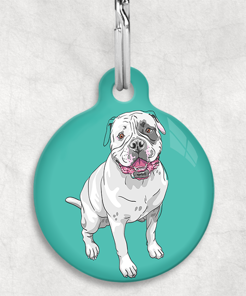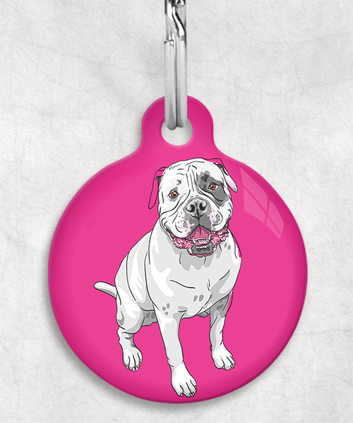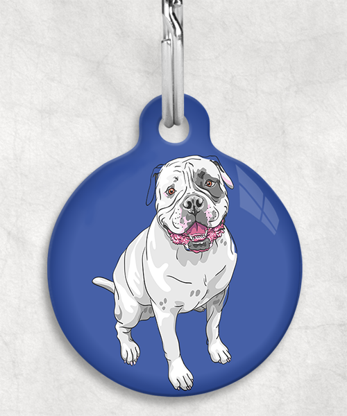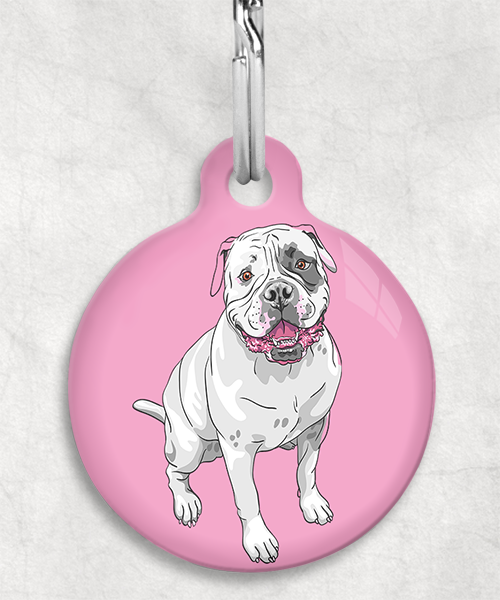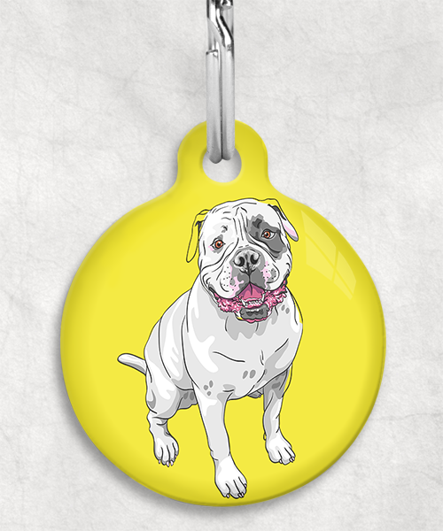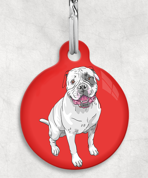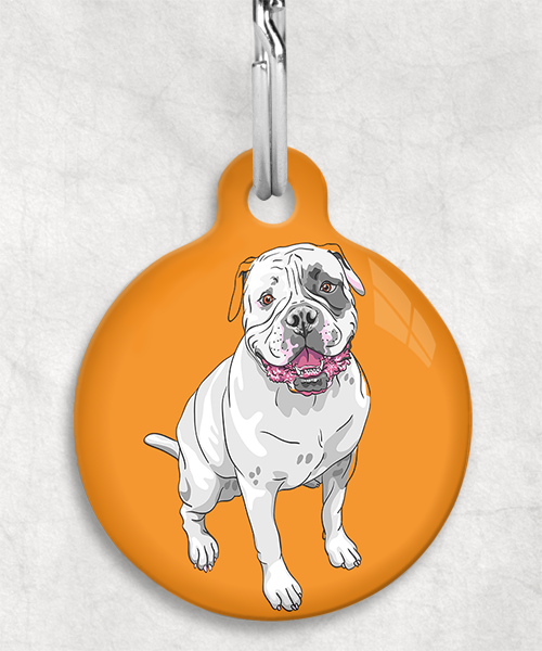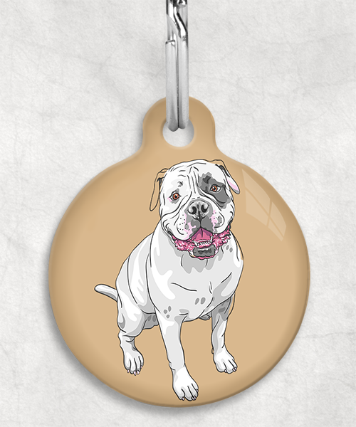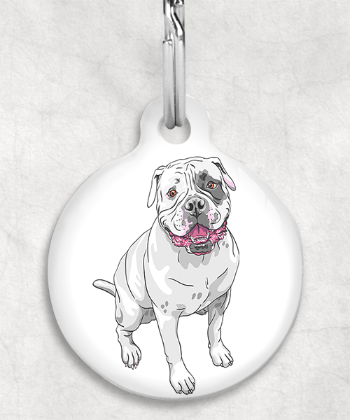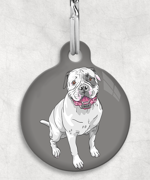 Amerikaanse bulldog z/w zittend