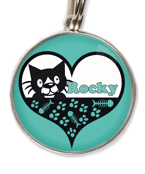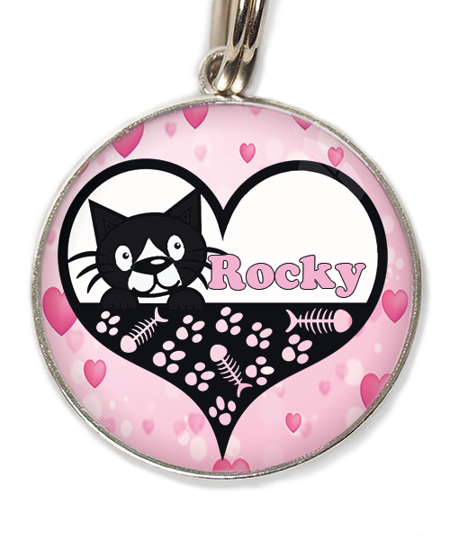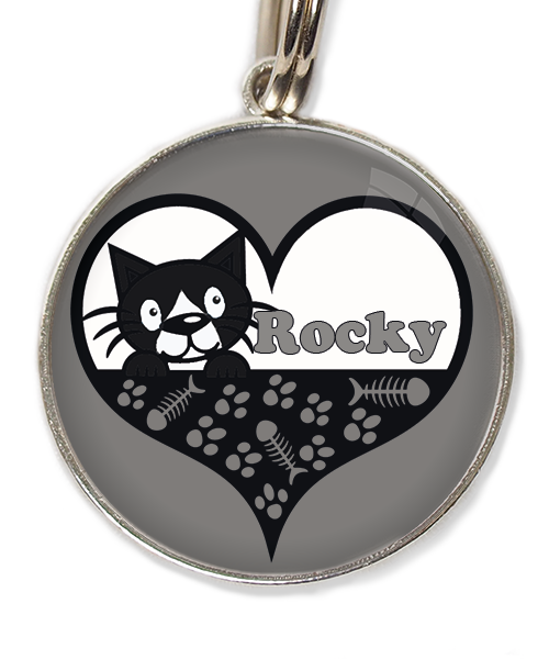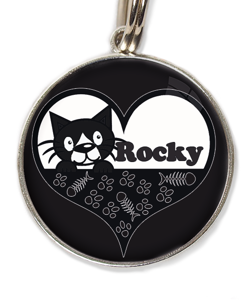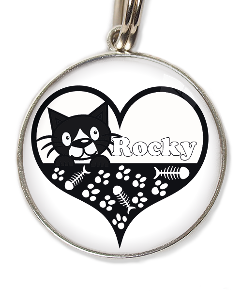 kat zwart-wit in hartje met naam