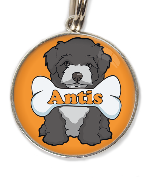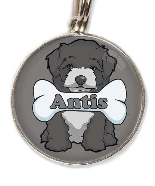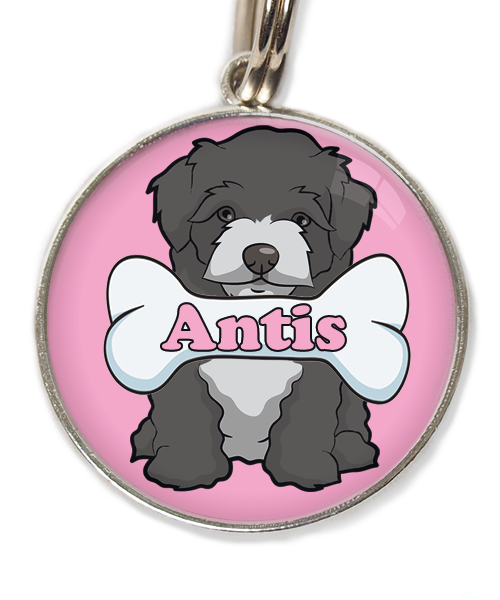 Maltipoo zwart witte snuit met been