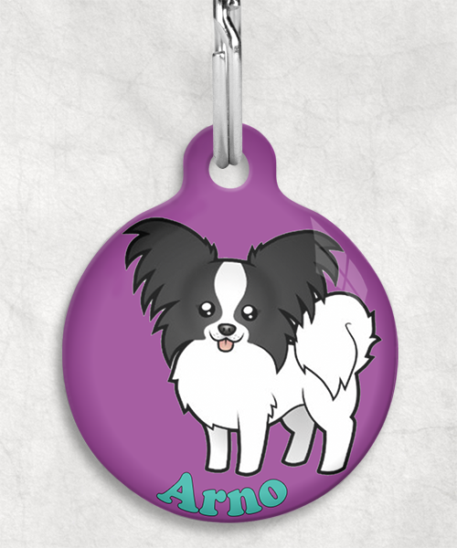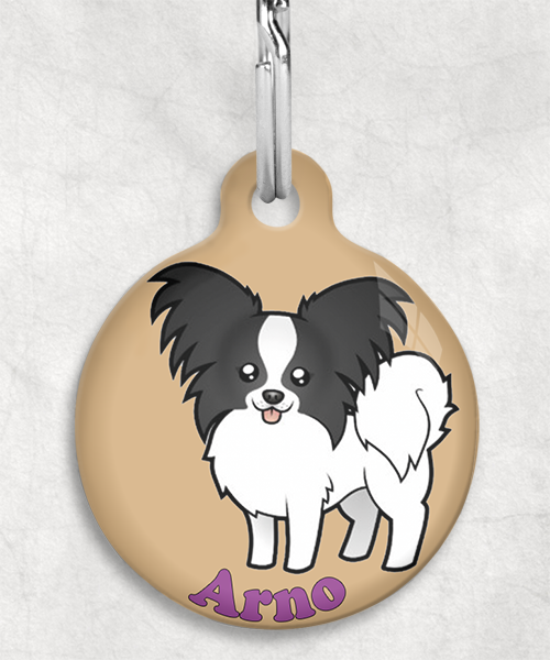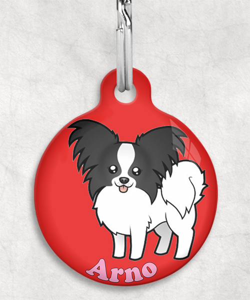 Vlinderhond zwart-wit met naam